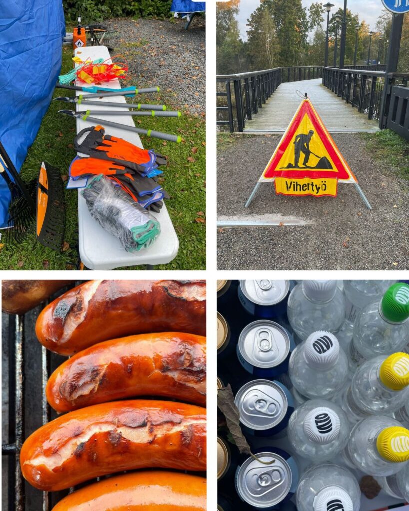 Talkoopäivinä tunnelma on ollut iloinen ja yhteistyö sujunut hyvässä hengessä. Vireän teltalta on löytynyt tarvittavat välineet, ja talkoolaisille on tarjottu purtavaa ja juotavaa – kiitos kaikille osallistuneille ja yhteistyökumppaneille!